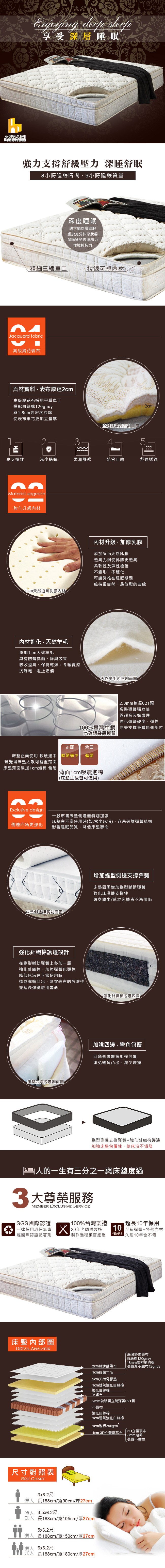 MG珍寶-正三線特級羊毛+抗菌蜂巢獨立筒床墊-單人3.5尺