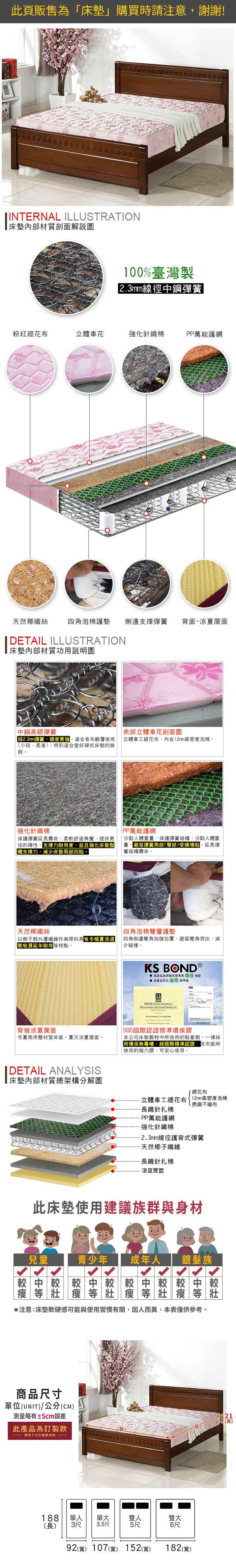 【本木】D06 抗菌連結式彈簧床墊-單人3尺