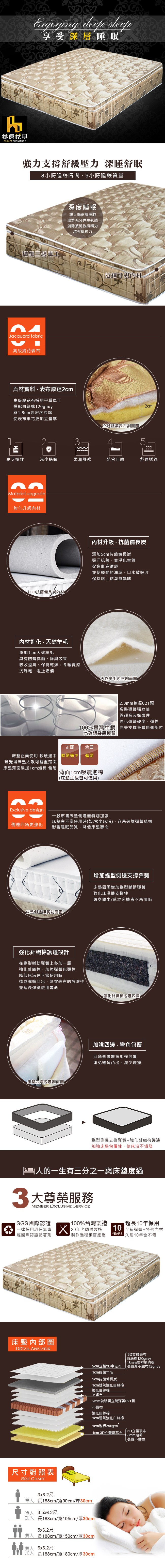 MG珍寶-飯店用-護腰型-乳膠抗菌硬式獨立筒床墊-雙人加大6尺