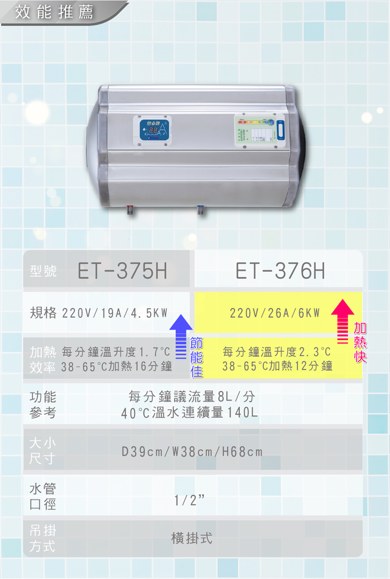 怡心牌電熱水器 ET-376H(26A 6KW)