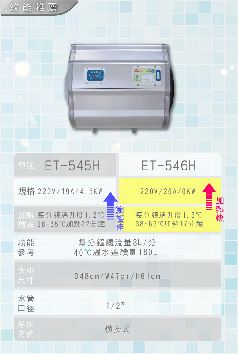 怡心牌 電熱水器 ET-546H(26A 6KW)