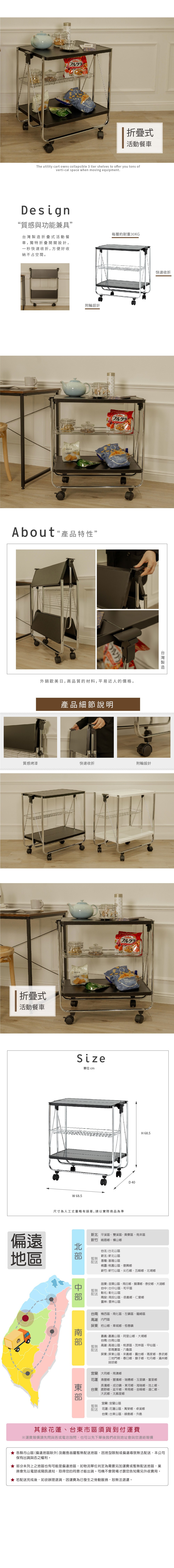 【ikloo】廚房折疊式活動餐車/置物車(黑)