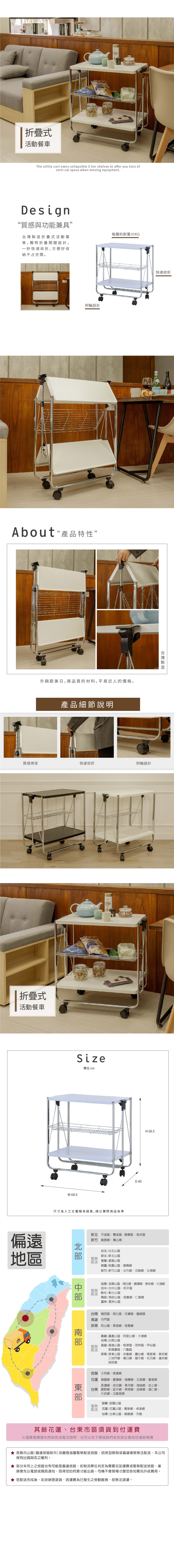 【ikloo】廚房折疊式活動餐車/置物車(白)