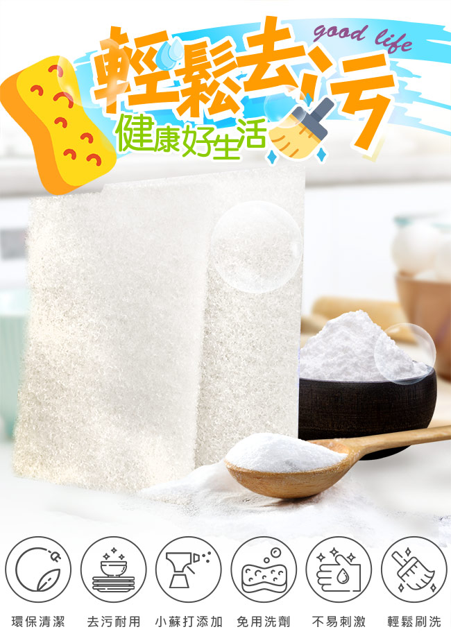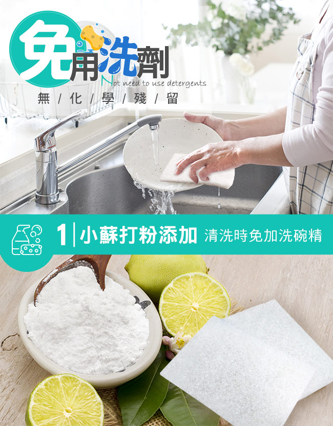 2.小蘇打粉會因使用次數及油漬濃度而逐漸減少,若感覺去汙衰退時可當一般菜瓜布使用。