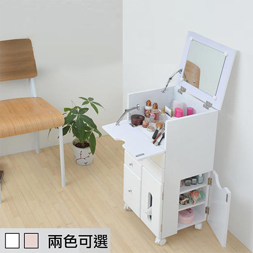 《紀子》日式多功能化妝收納櫃,可移動的特性最適合當做閨房內的化妝櫃或取代化妝桌來節省空間,隨興地坐在床上或椅子上打開商品的天板就能攬鏡自照的裝扮,做為邊櫃或床頭櫃也都是恰到好處,這麼經濟實惠又優質的台灣製造銷日精品,正與日本各大網站同步銷售中,您也可以簡單擁有喔!