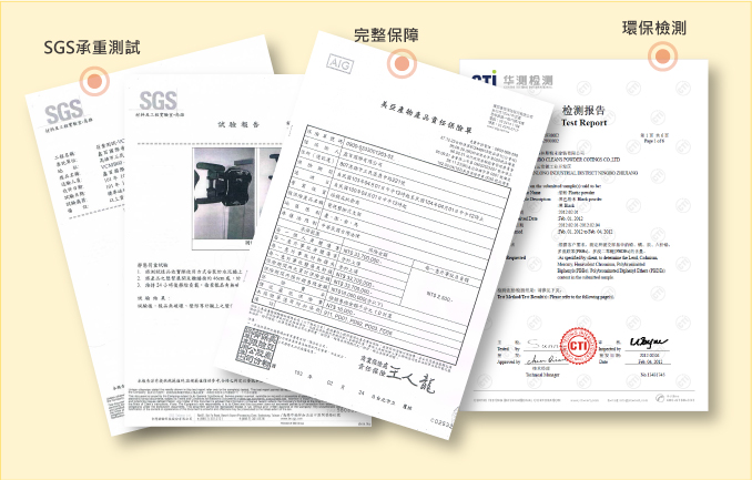 從產品選用的材質表面的處理,最重要固定的螺絲,皆是經過實驗室測試與檢驗,確保品質。