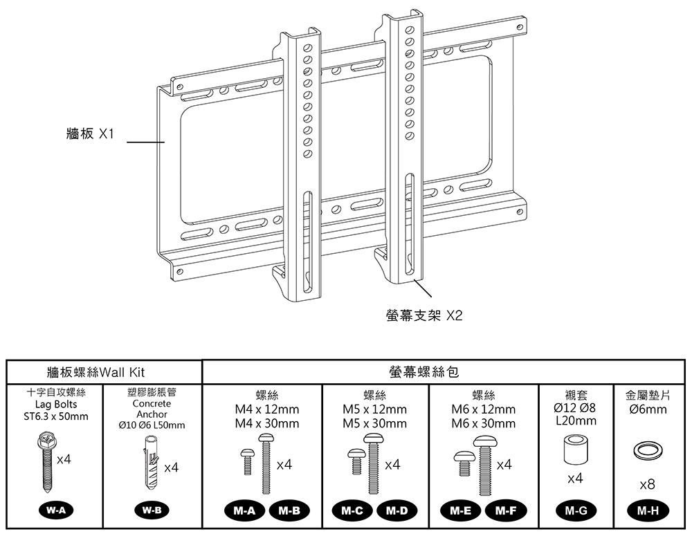 【NO BRAND】【BG-A-75-86】配件(大)75-86吋壁掛架固定式