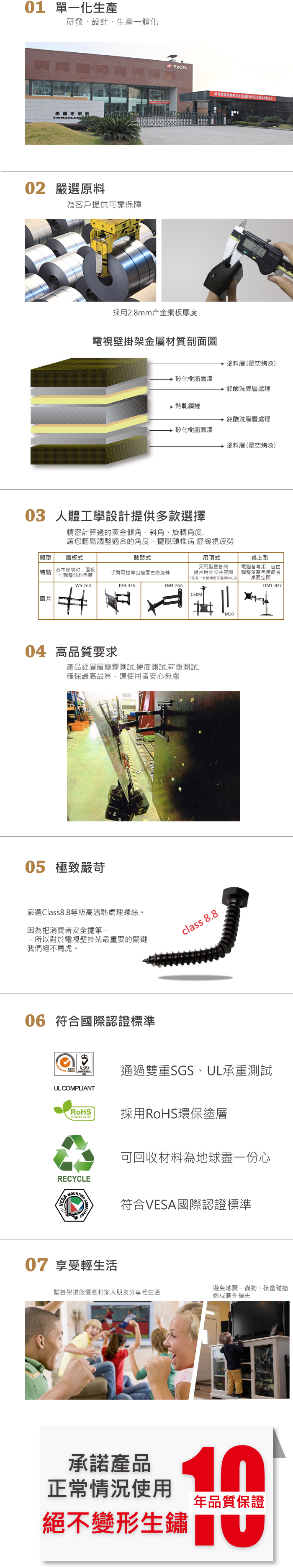 因有深厚的金屬製造經驗以及歐美知名電視架品牌代工經驗,且有自己的研發團隊以及檢驗實驗室,