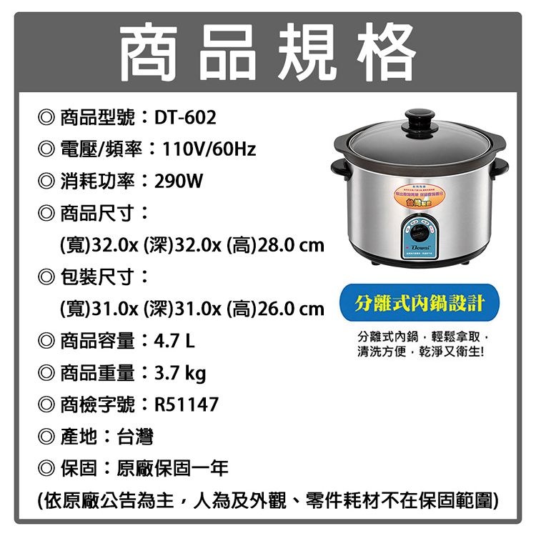 Dowai 多偉 4.7L不鏽鋼耐熱陶瓷燉鍋 DT-602 ~台灣製造