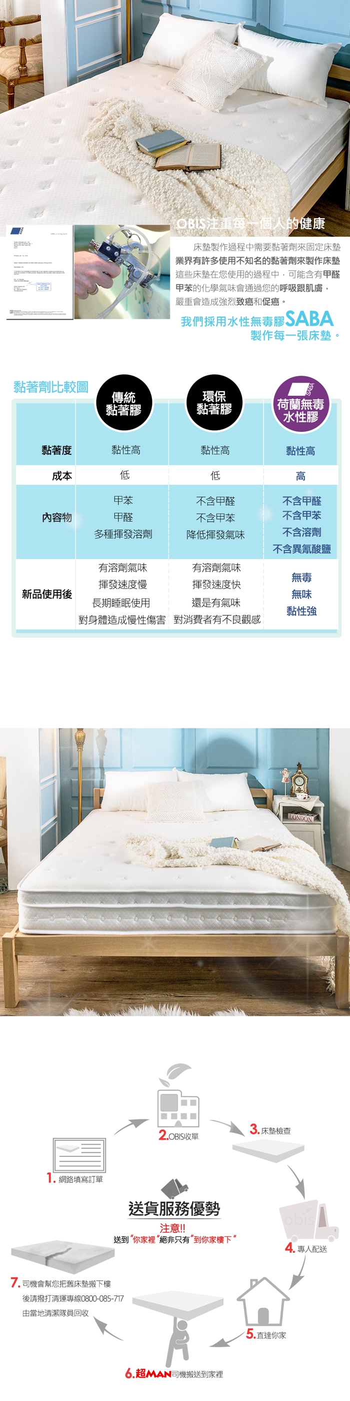 【obis】晶鑽系列_MONET三線乳膠獨立筒無毒床墊雙人加大6*6.2尺