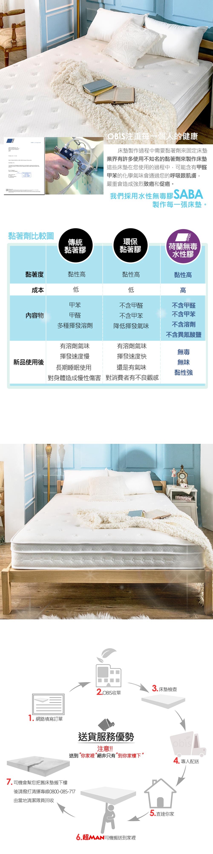 【obis】晶鑽系列_MONET三線五段式乳膠獨立筒無毒床墊雙人加大6*6.2尺