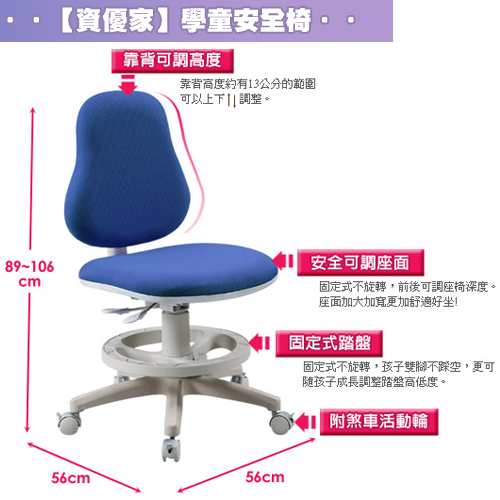 ◆安全踏盤:不怕小朋友有踏不到地面的危險,學童可以輕鬆放置雙腳讓坐姿更正確坐起來更安穩,而且踏盤可依孩子身高調整高度,即使是年幼的孩子也不致雙腳騰空,安全又健康!