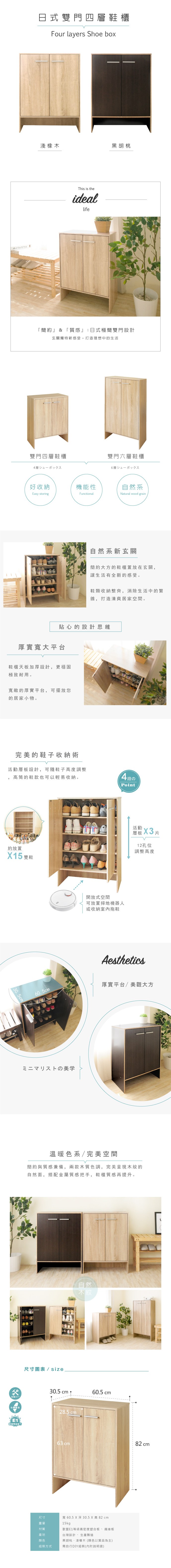 《HOPMA》日式雙門四層鞋櫃 台灣製造 玄關櫃 收納櫃 邊櫃 鞋架-淺橡(漂流)木