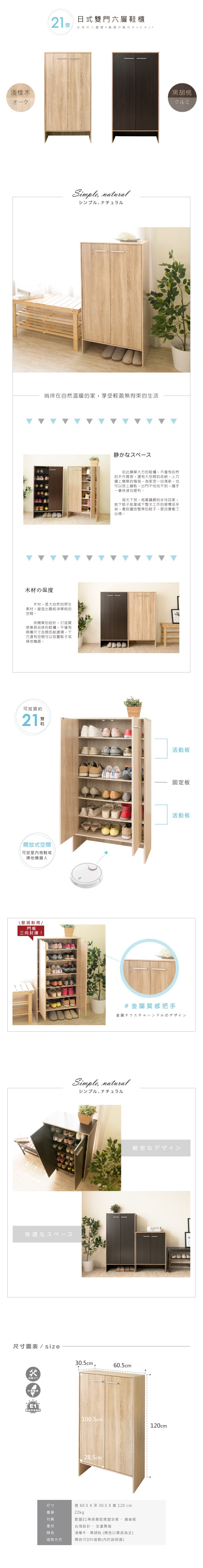 點我下載《HOPMA》日式雙門六層鞋櫃 台灣製造 玄關櫃 收納櫃 邊櫃 鞋架-黑胡桃