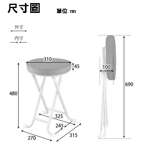 【新巧易收】軟座折合椅凳,規格與用料都是與外銷日本同步生產,特別針對高要求的日本市場設計了新款式---外撇腳! 在靠近地面的鐵管改以外撇的造型,加工程序更加複雜,最主要的目的是增加穩定性,除了讓整體的重心更加的穩固之外,也能改善舊版有刮傷木地板疑慮的缺點,整體設計更貼心!