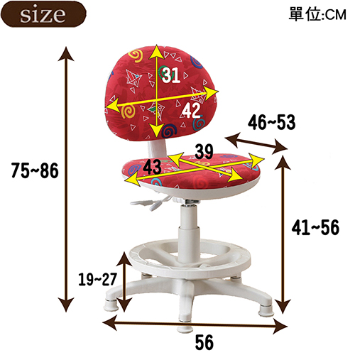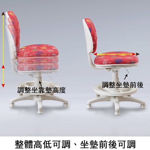 座面固定不會旋轉,免除了家長所擔憂之旋轉帶來的危險以外,更能讓學童穩穩的安坐在椅子上,不會因旋轉嬉戲造成不專心,更避免椅背旋轉撞到桌面的情形!