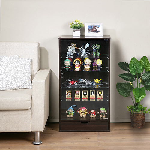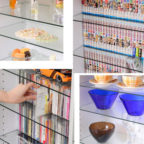 穿透力十足的強化玻璃門,除了能展示收藏品以外,也為您的公仔模型擋風遮塵,按壓彈出的拍拍手磁鐵五金設計,開關皆便利。加深30公分能放更多更大的收藏品,共有四塊厚度5mm的強化玻璃層板耐重力足夠,將每段區隔出五層收納空間,每隔3.3cm可以調整層板高度,側板共有20個高度的孔位可以調整,讓內部收納高度可以完全符合您的需求,無論您的公仔模型是高是矮都不會浪費收納空間,即使收納紅酒或書本也沒問題。