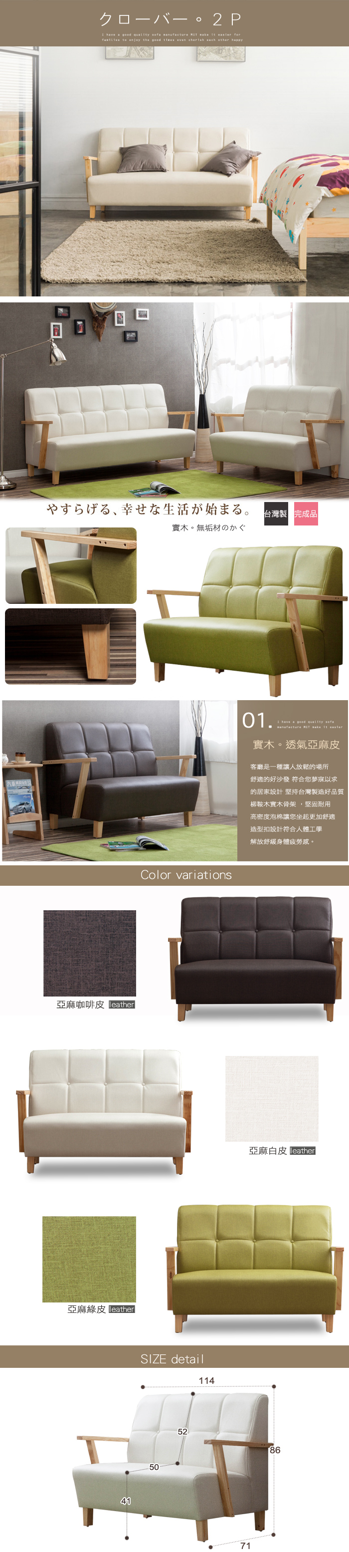 IHouse-好便宜 台灣製高背S曲線護腰 迴彈貓抓皮沙發 2人座香草黃+ 麥茶棕
