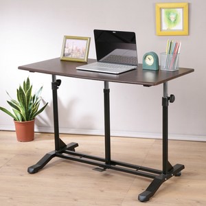 《哈特》氣壓無段式升降站立桌,桌面使用自然風格的木紋表面,真空熱壓成型沒有銳角,寬度足足有100公分,擁有一個面積很大的桌面可以運用,將腳踩下桌底中央的踏板桌面即可升降,左右兩側鐵管附有固定旋鈕,當桌面調整到您需要的高度後可以將兩側的固定旋鈕旋緊,可以避免桌面因氣壓棒的特性而上下晃動,可以說將氣壓升降式桌面的便利性以及固定桌面式產品的穩固性都兼顧了!