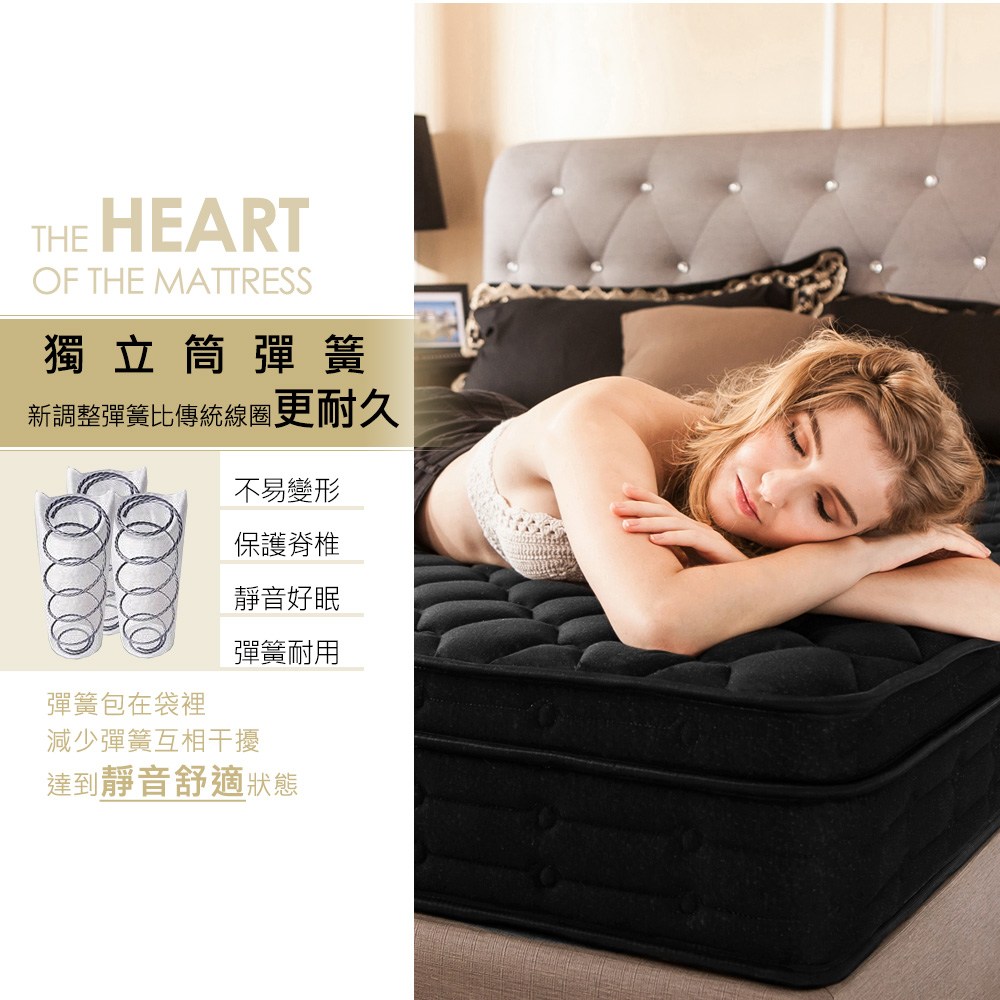 《新之森林》奧利奧竹炭黑四線3M防潑水獨立筒床墊-雙人5尺