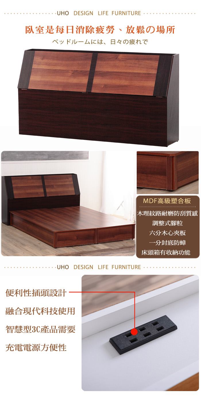 IHouse-沐森 房間2件組(插座床頭+床底) 雙大6尺梧桐