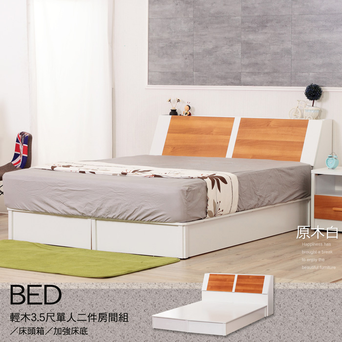 傢俱工場-派蒙 簡約收納房間2件組(床頭箱+六分床底)-單大3.5尺古橡
