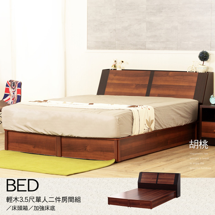IHouse-沐森 房間2件組(插座床頭+床底) 單大3.5尺梧桐