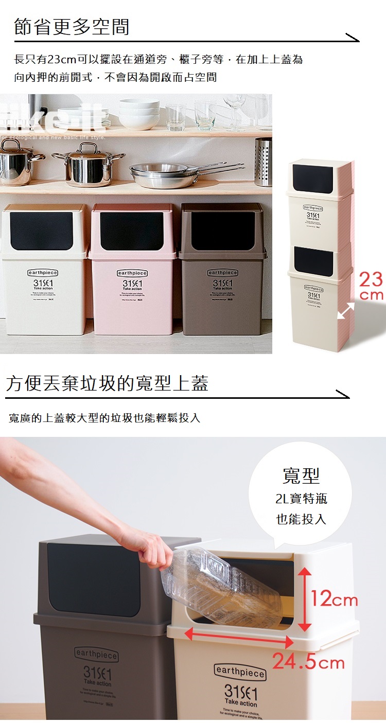 Like-it|earthpiece 前開式可堆疊垃圾桶17L