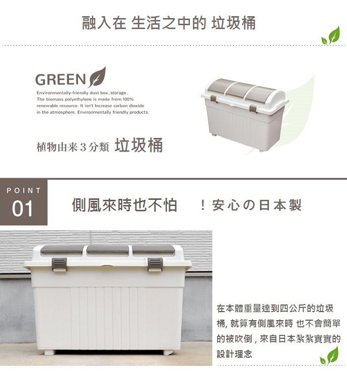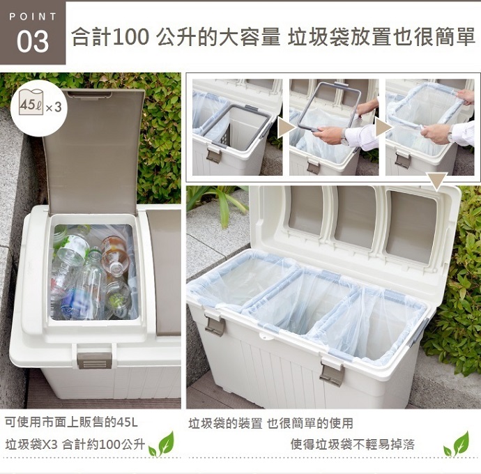 【日本RISU】三分類環保多功能收納大容量垃圾桶100L