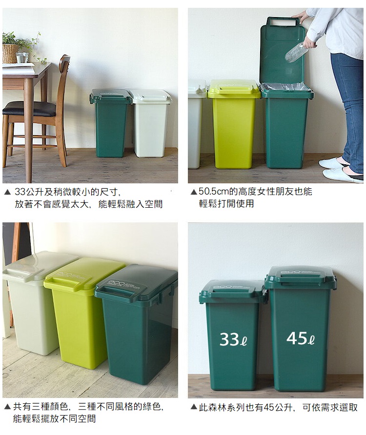 【日本RISU】連結式環保垃圾桶森林系33L-淺綠色