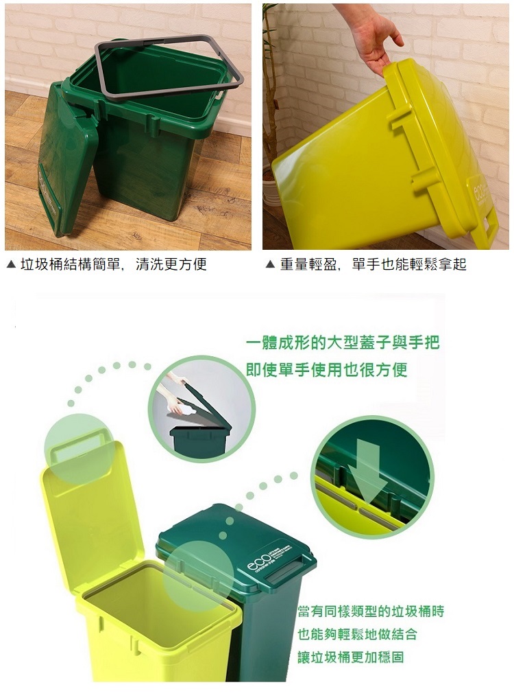 JOINT掀蓋連結垃圾桶 45L 綠色