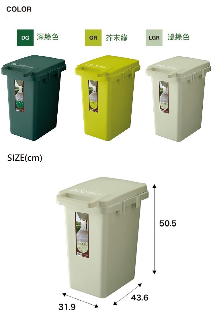 日本RISU(H&H系列)掀蓋式防臭連結垃圾桶45L