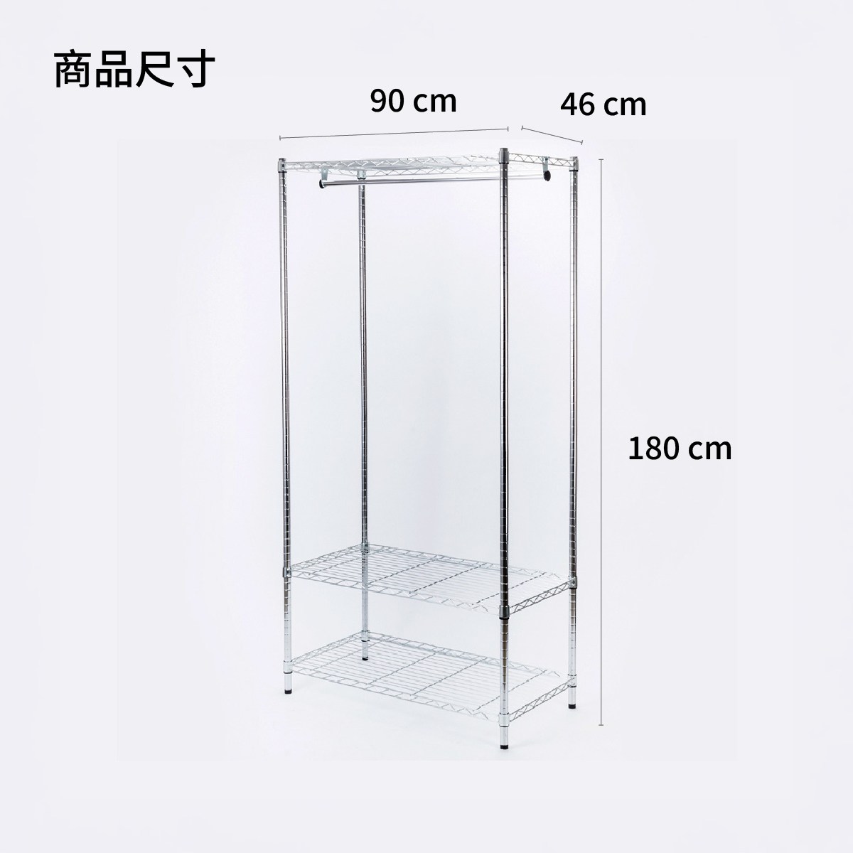 此外,每層網片可荷重50公斤,表面鍍鉻處理不易生鏽,美觀又大方,另附吊衣桿,吊掛收納方便好整理