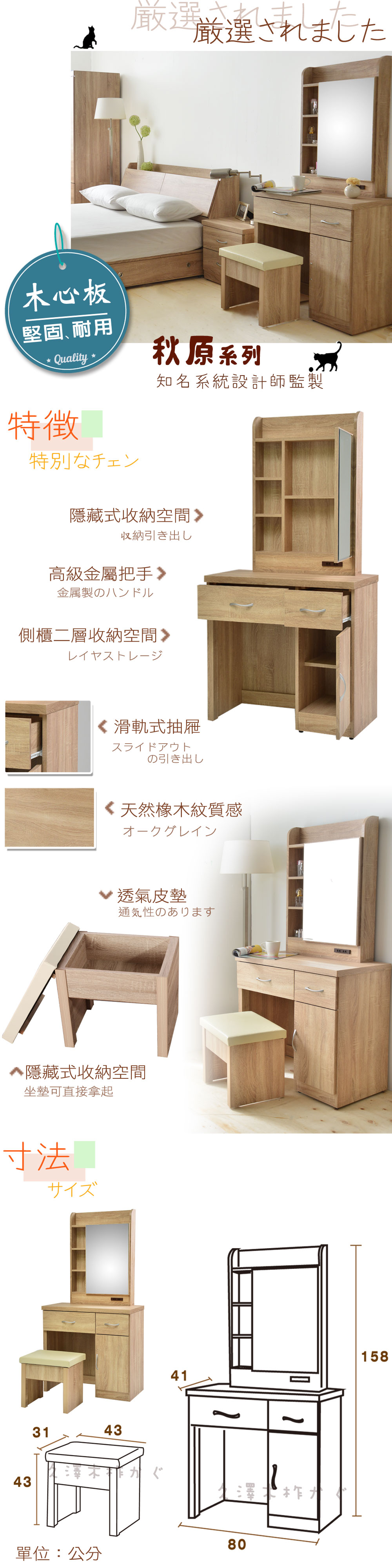 AS DESIGN 雅司家具-千代2.7尺鏡台全組-81*40.5*162cm-含椅