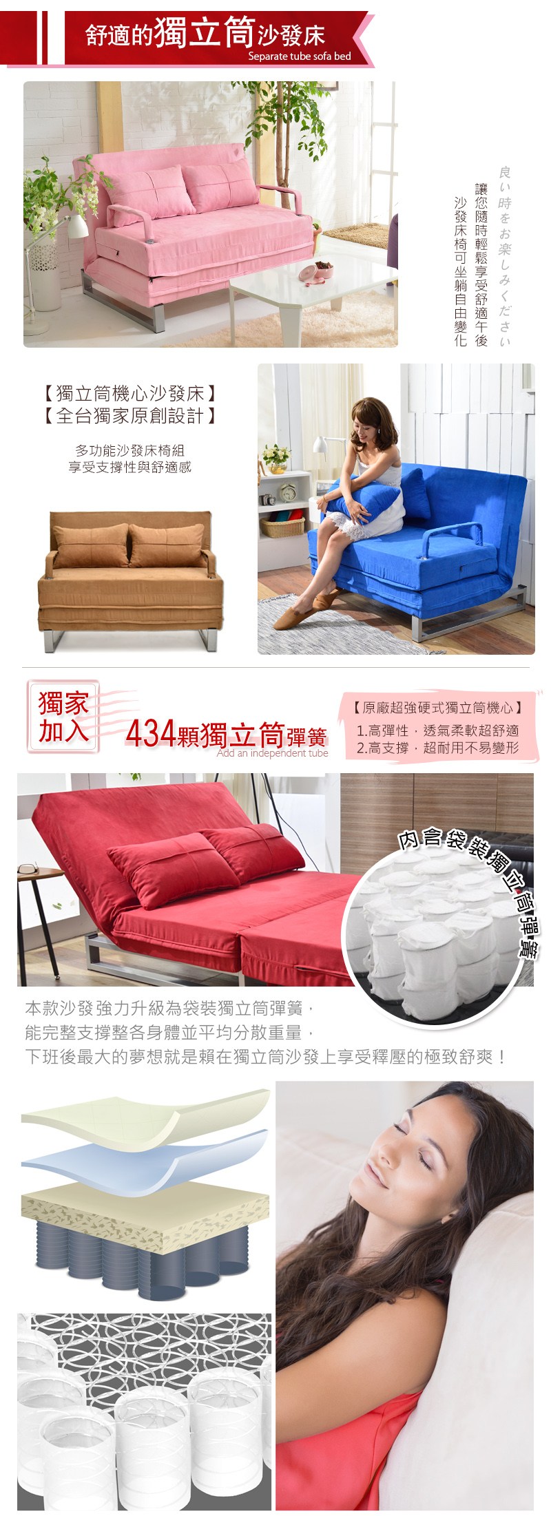 ‧讓您無論當沙發坐的時候、睡覺的時候,都能感覺到獨立筒帶來的支撐性與舒適感