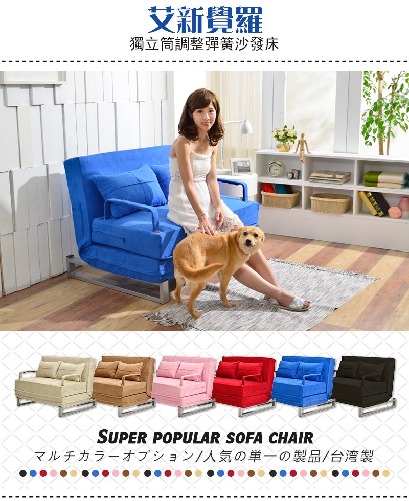 商品名稱【艾新覺羅五段式調整彈簧沙發床】(雙人坐、單人睡) 可拆洗!