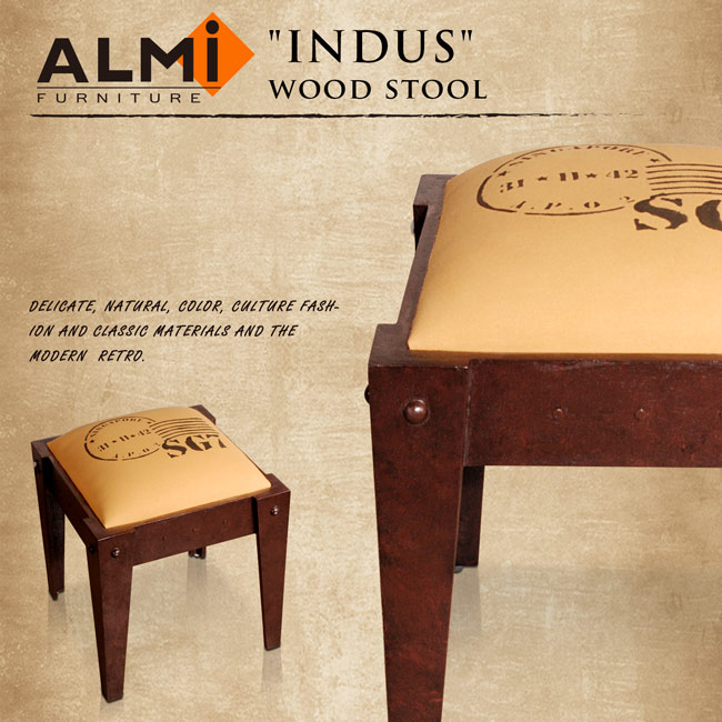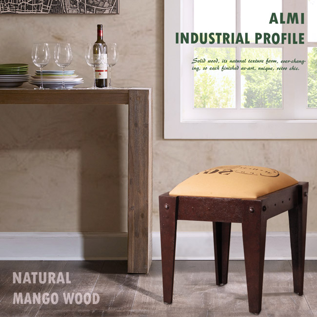 【ALMI】DOCKER PROFILE- STOOL INDUS 工業風椅凳(工業風.金屬感的紅棕色),純自然棉厚實座墊,復古的油墨郵戳印刷,展現不凡的個人風格。工業風簡約外觀,實木鉚釘風格,與眾不同的個性品味。芒果木的木紋質地,呈現了有層次感的工業空間。作為一個工業風椅凳,專屬於您個人的獨有魅力,讓不平凡的生活,豐富了您的人生。