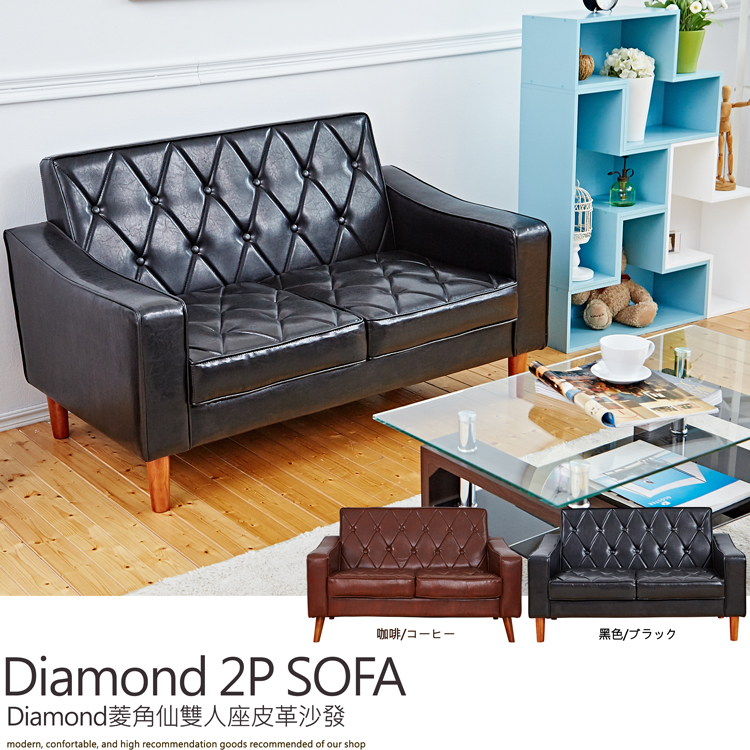 【班尼斯國際名床】~~日本熱賣‧Diamond菱角仙雙人座皮革沙發/另有單人+三人座!