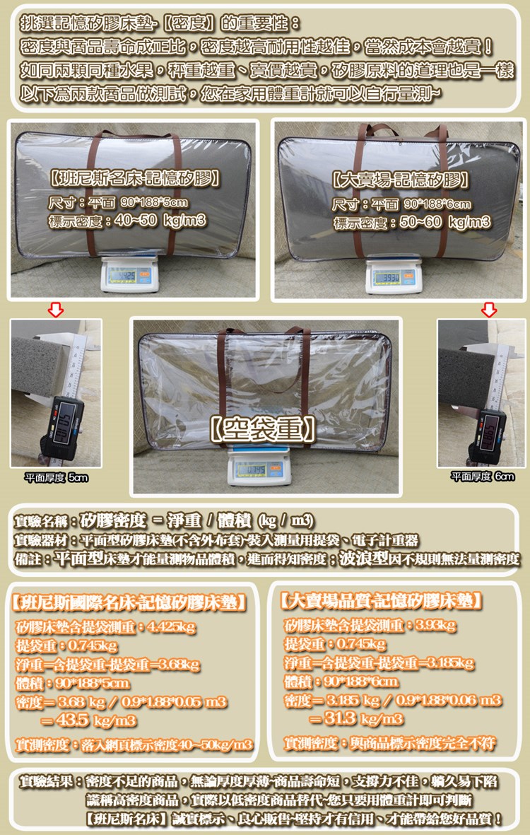 只要您購買的是【平面型矽膠床墊】~您在家用體重計就能基本判斷該商品的品質