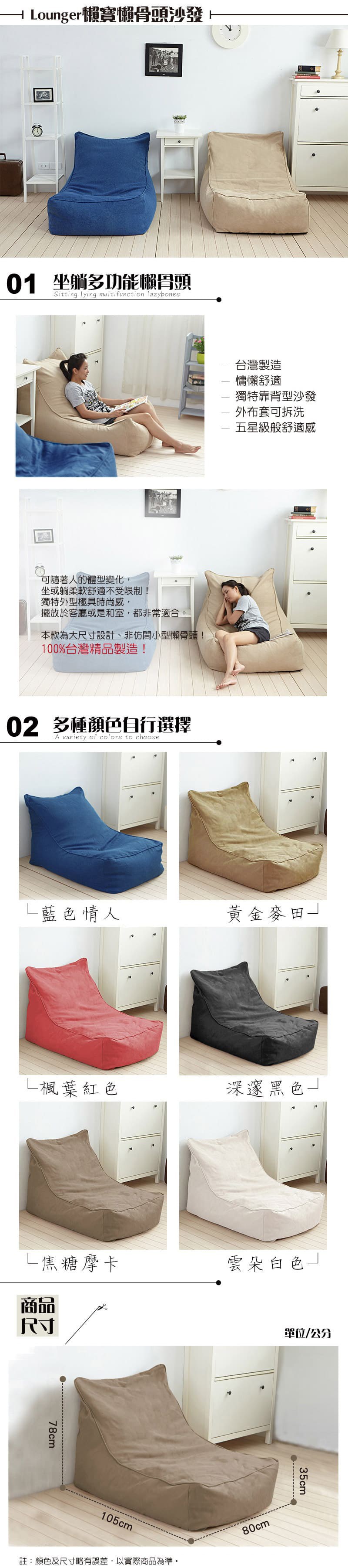 如充填量太飽,躺下去會沉不下去~這樣就不好躺,躺起來會像一般椅子~不會慵懶唷!