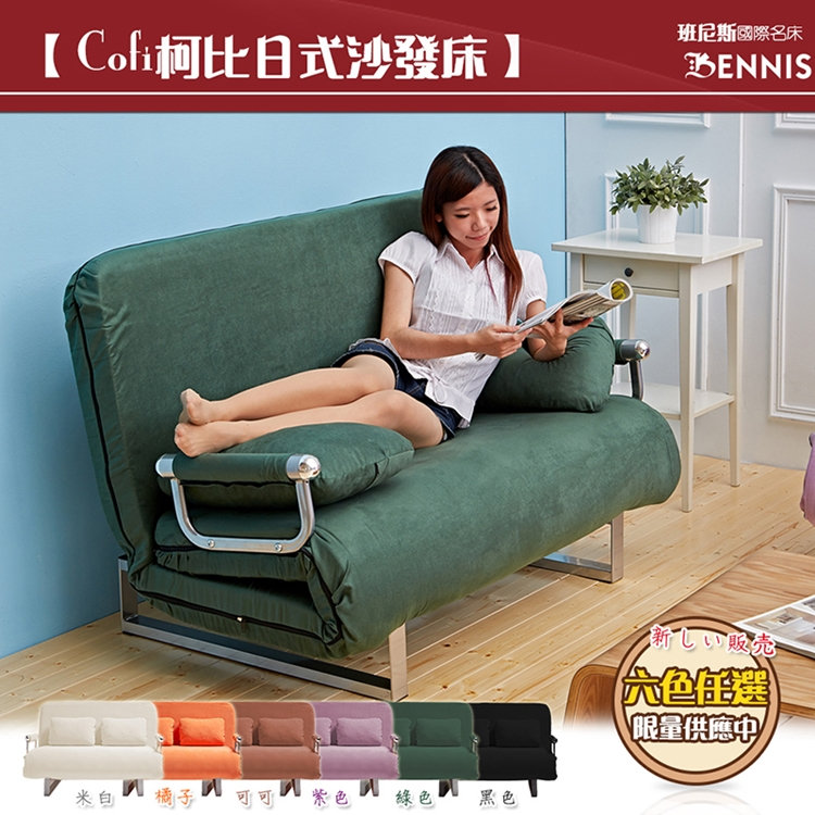 | ●商品名稱:班尼斯名床~第四代COFI 柯比日式沙發床(可拆洗)《促銷品》雙人沙發~ ~附班尼斯原廠保證卡,品牌經營、品質有保障~ ※ 堅持採用通過ISO-9001認證工廠生產高密度泡綿! ※ 堅持採用中鋼為原料的台灣鋼鐵調整骨架! ※ 100%台灣製造! ●商品簡介: 由單點椅腳支撐改版為椅腳面的支撐,加強攤開成床的底座支撐。 將 2.5cm的科技聚合綿置入坐墊,增加沙發的支撐性。 現代化設計,不受限於單一使用方法,空間用途更廣泛變化更有彈性。 椅背採 六段式調整,可整各攤平,坐臥躺皆適宜,三秒鐘沙發變成床。 品牌經營~保證絕非目前流行的劣質偷工減料的床。 ●商品特色: (一)坐墊內材為~2.5cm聚合棉、高密度泡棉、透氣樹脂棉 材質做工絕非廉價商品可相提並論。 (二)整張布套升級-採高級舒適麂皮絨布設計,舒適溫暖、美觀大方。 (三)坐(床)墊厚度達12公分,非一般偷工減料~厚度只有8公分的沙發床。 (四)布套採用目前時尚流行高質感麂皮布,絕非便宜印花布。 (五)採全開式布套可拆洗。 (六)乘坐寬度達122公分,兩個人使用相當寬敞。 (七)攤平寬度達130公分,兩個人睡覺也是可以的喔^_^。 ●商品規格: 1、材質: 骨架-高碳鋼骨架(中鋼原料) 坐墊-高密度泡棉、科技聚合棉 (堅持採用通過ISO9001認證工廠生產泡綿)。 布套-高級舒適麂皮布