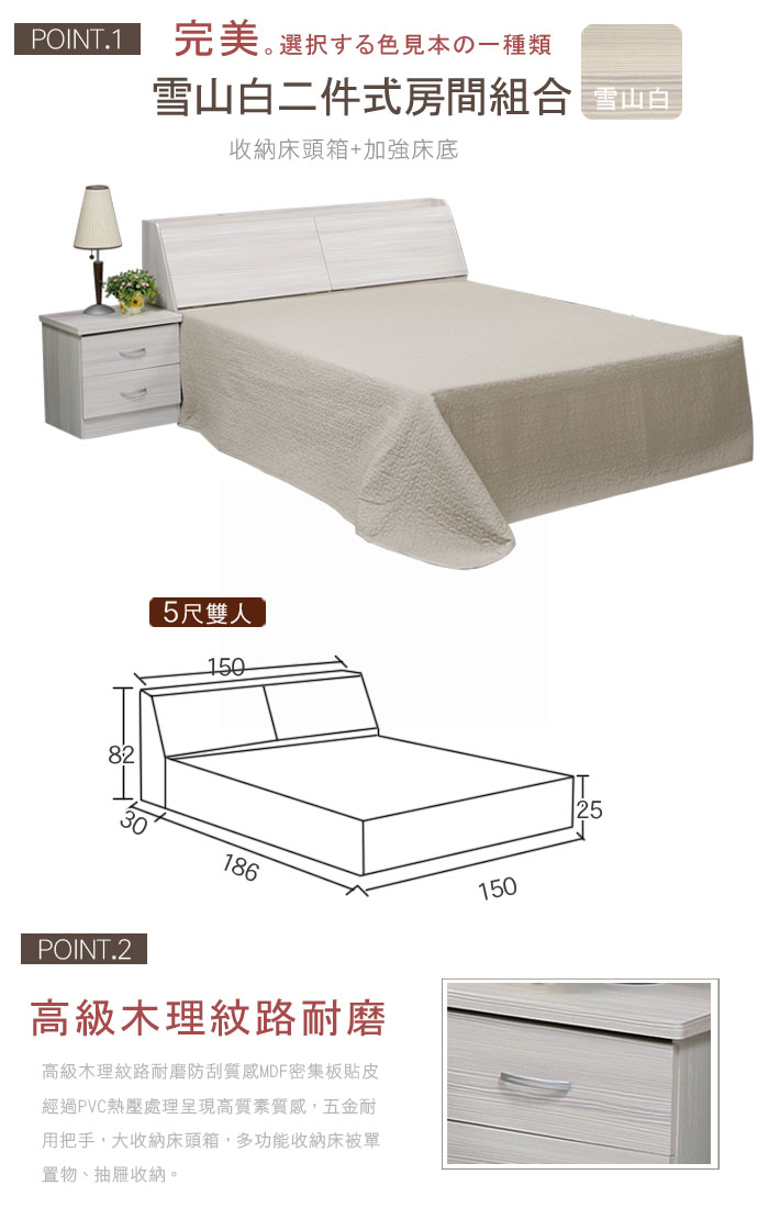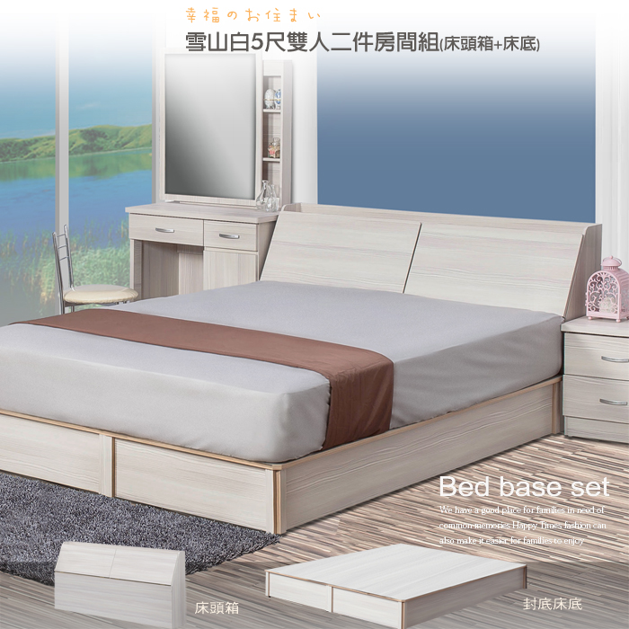 傢俱工場-派蒙 簡約收納房間2件組(床頭箱+六分床底)-雙大6尺古橡