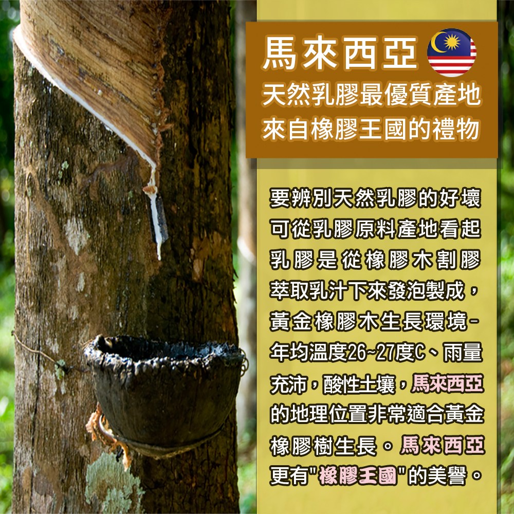 故『馬來西亞~公認為東南亞一般高純度、高舒適的乳膠床墊最大來源地』