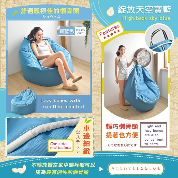 PS:懶骨頭充填量7分飽是最佳乘坐舒適感,可變化多重乘坐感覺~ |