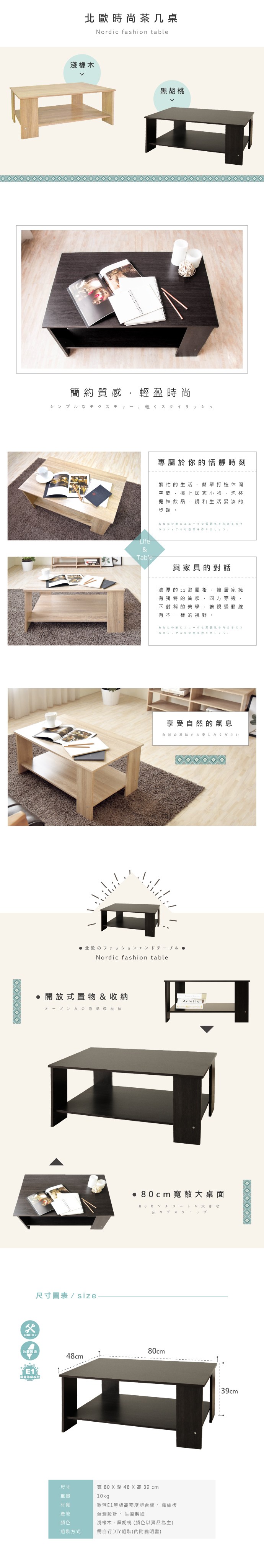 HOPMA 合馬家具 北歐時尚茶几桌 輕便大桌面 80cm寬 淺橡木 漂流木