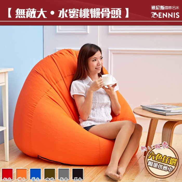 【班尼斯】超極大顆水蜜桃懶骨頭-橘色