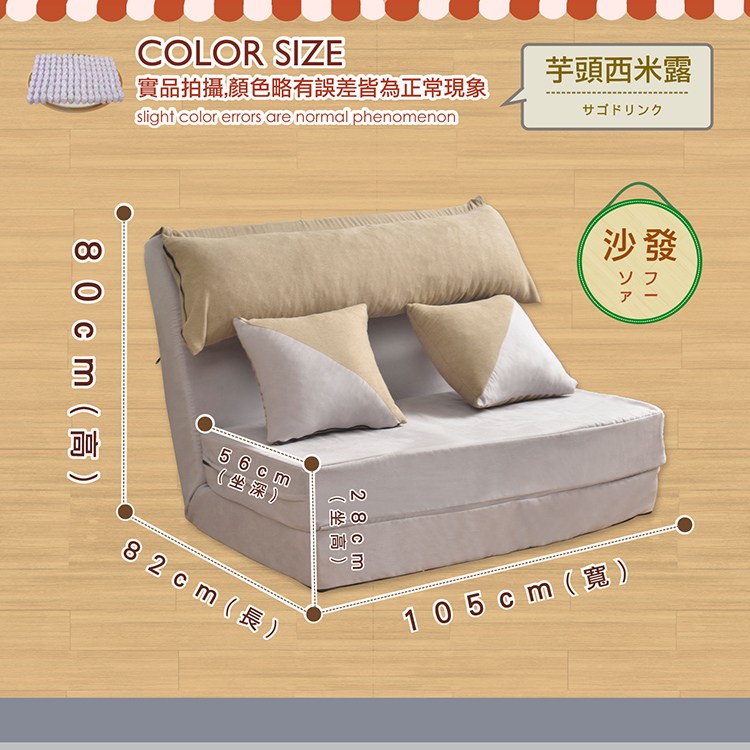 2、沙發尺寸:長 75 cm× 寬 105 cm× 高 80 cm、坐高 28cm、坐深 56cm