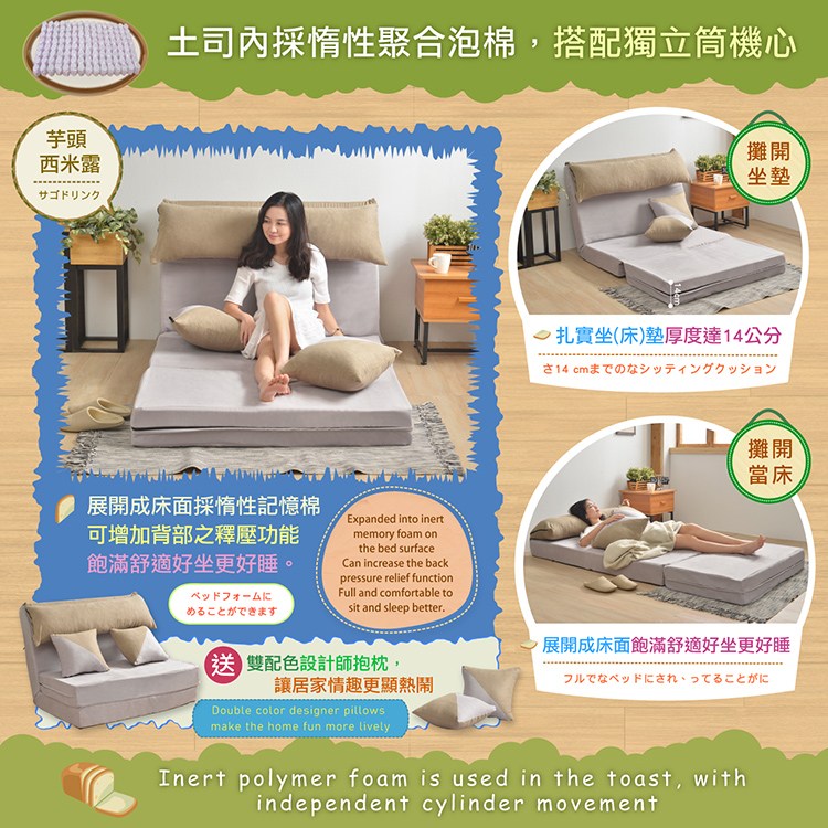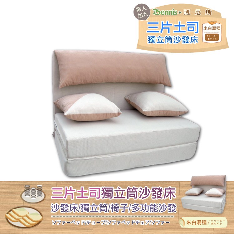 ●商品名稱:班尼斯~居家新情人~三片土司設計師獨立筒~創意沙發床