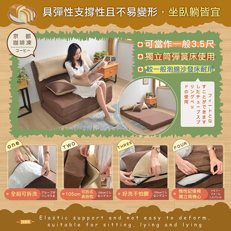 (一)結合沙發與獨立筒彈簧床的功能性,好坐、好睡、好好玩。