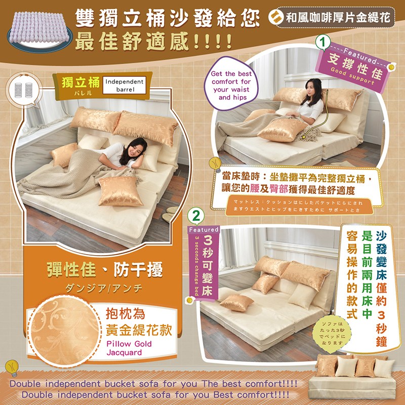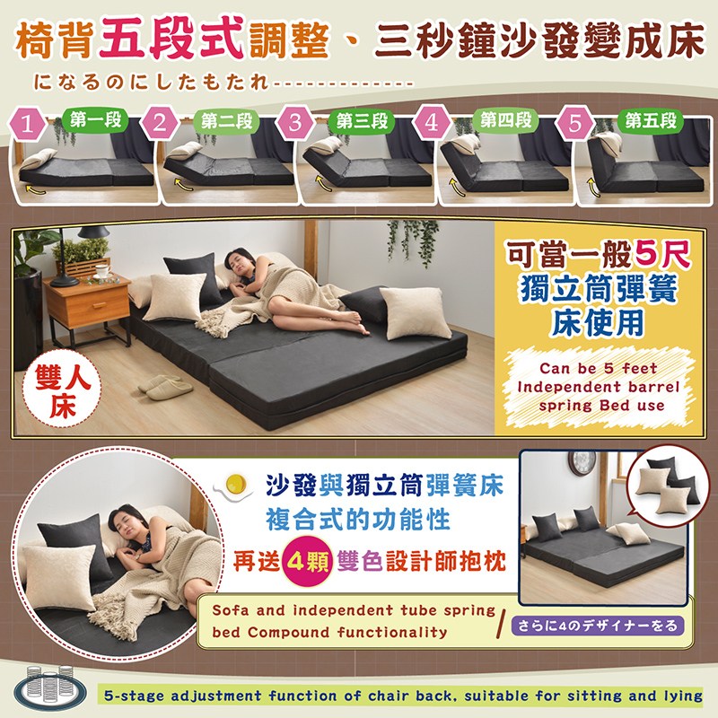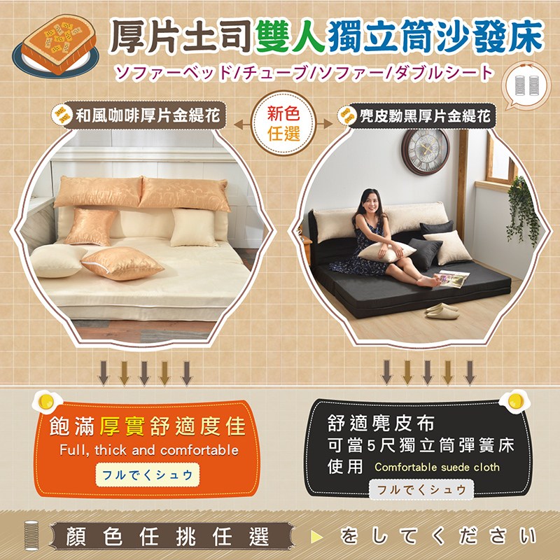 (一)台灣創新首賣~《重量級厚片土司,飽滿厚實我最愛~5尺雙人標準獨立筒沙發床》